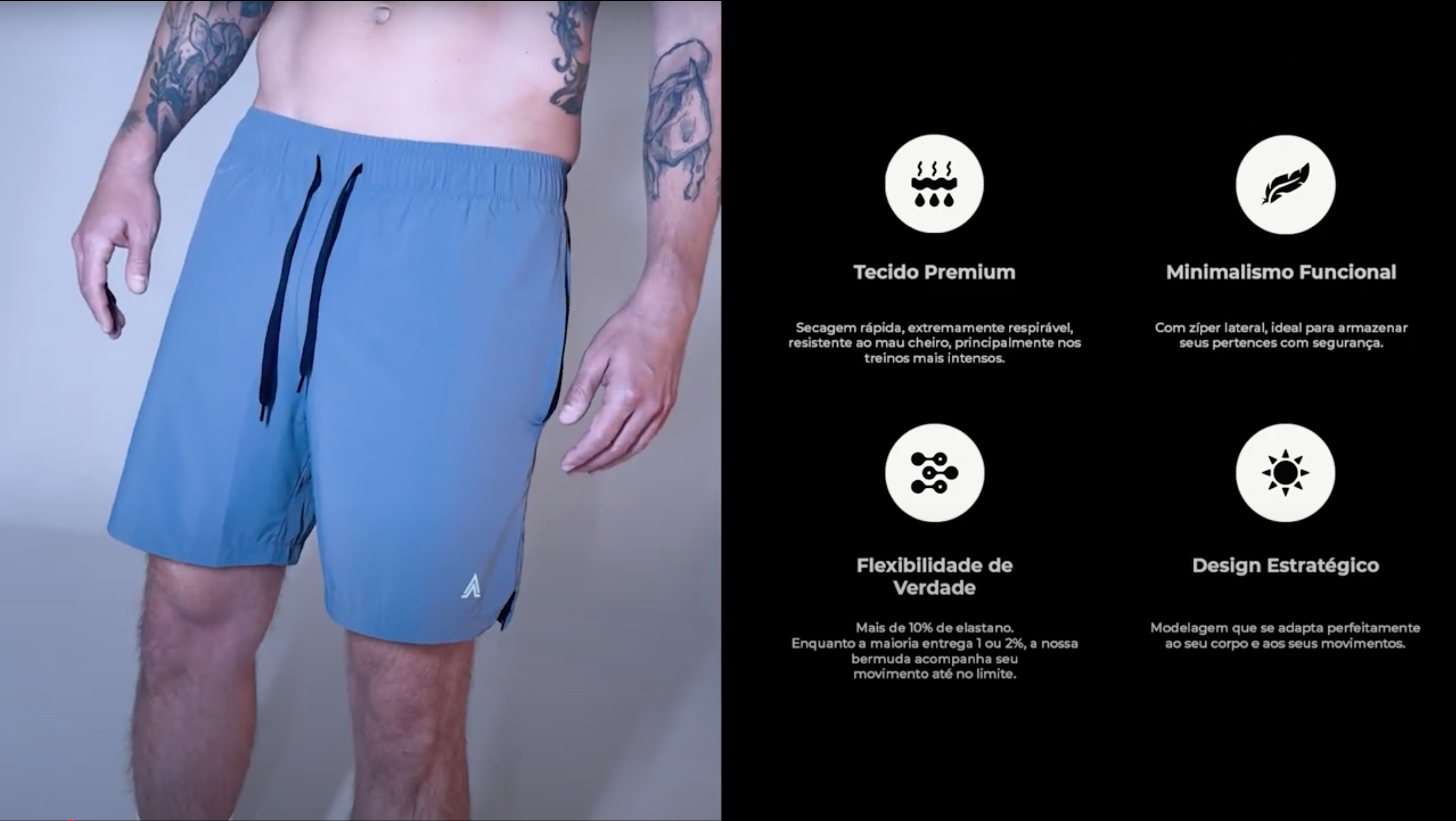A Bermuda Active Fit combina flexibilidade, estilo e resistência ao mau cheiro. Foi desenvolvida para acompanhar seu movimento até o limite.